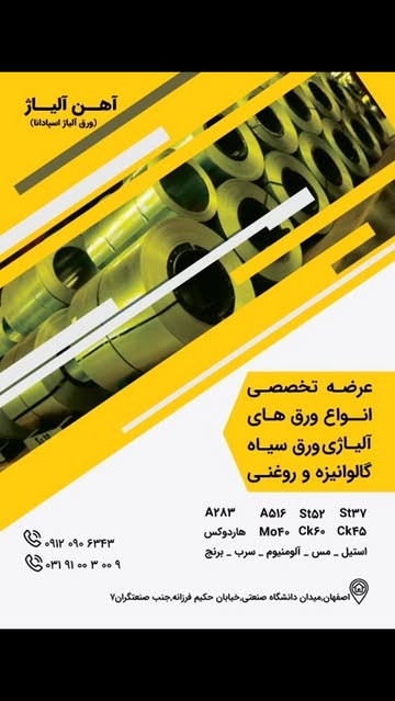 آهن و آلیاژ مشاوره کاملاً رایگان در زمینه: کاربرد انواع آلیاژها و گریدها ورقهای استیل باکیفیت ورقهای آلیاژی تخصصی ورقهای آلومینیوم، مس، برنج و سرب ورقهای آتشخوار با تحمل دمای بالا با ما تماس بگیر تا بهترین انتخاب رو داشته باشی! تضمین کیفیت + ارسال سریع 09120906343 03191003009 https://te/ahanaliazh